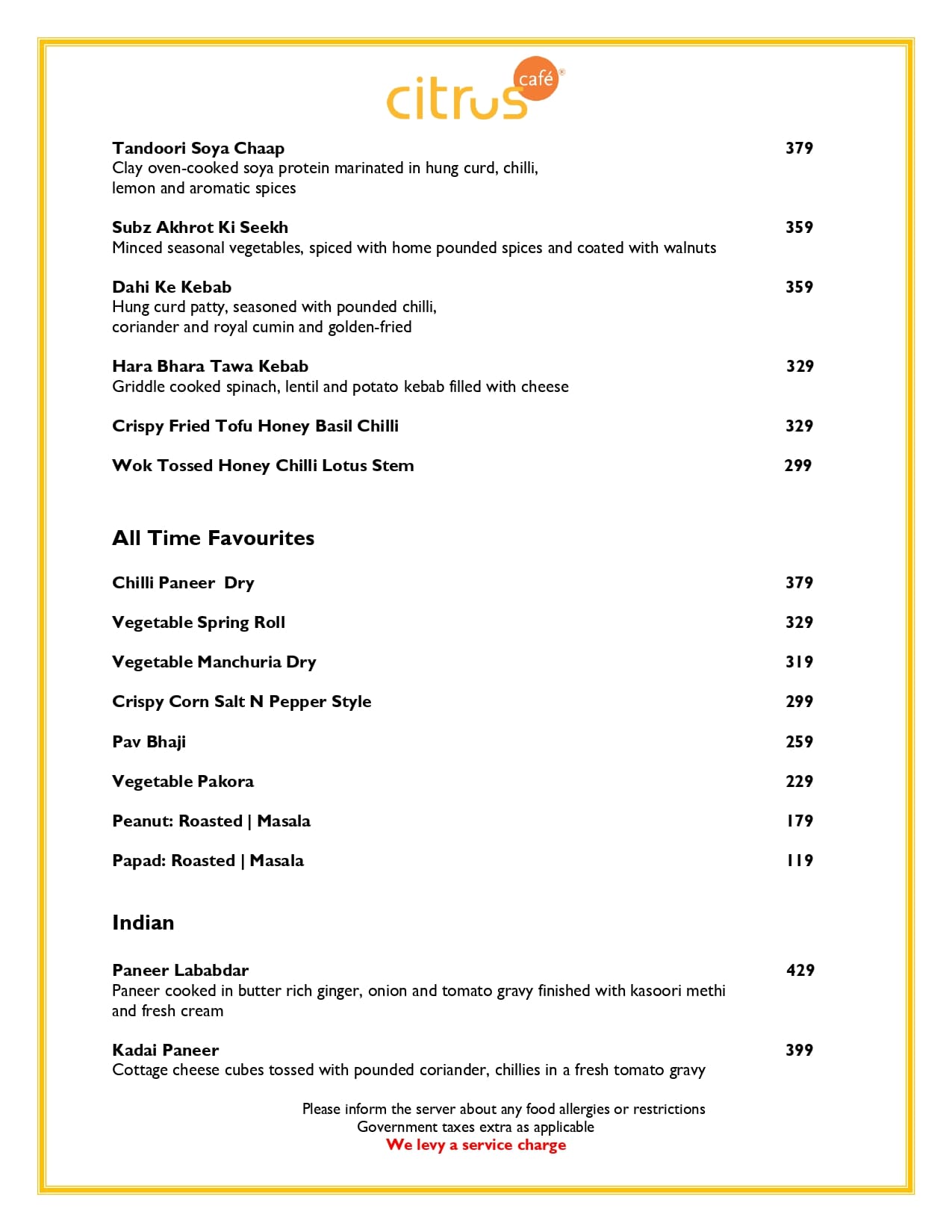 Citrus Café serves a variety of cuisines, including Indian, regional, and continental.